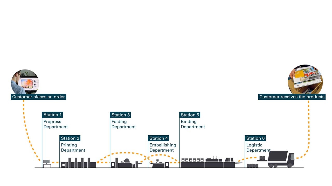 OneVision supports the entire production control from order entry to logistics with the station concept. Instructions and information on specific work steps can be automatically passed on to users at different production stations through the newly developed function. Users at the stations can record the implementation of process steps according to job specifications as live feedback to the workflow management system. This enables print service providers to digitally track the production status of their products in a transparent manner.