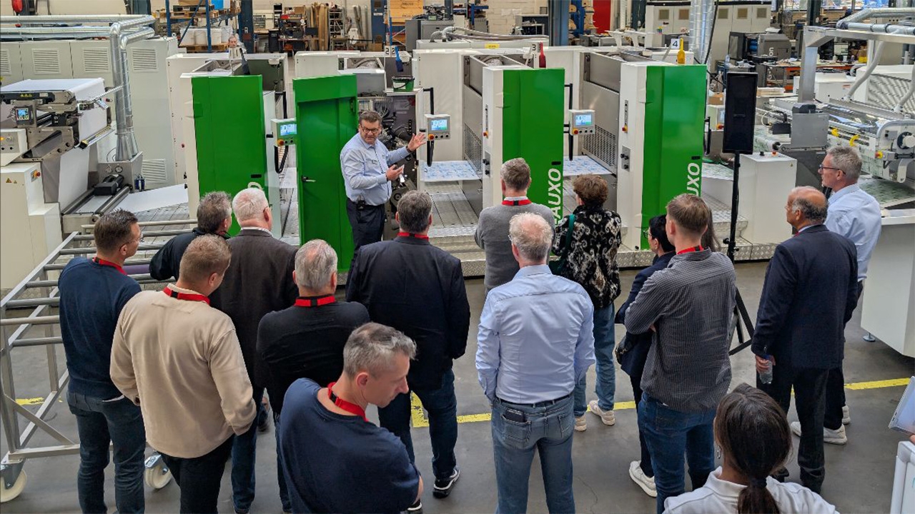 The highlight of the event was the live demonstration of the DG-Auxo, DG press’s third-generation web offset sleeve machine. Attendees watched operators perform critical processes such as sleeve changeovers and plate bending.